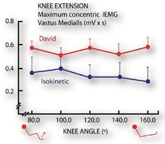 Şekil 17: Çalışma1, David’in değişken yüklemesinin, tüm hareket alanı boyunca eşit olarak dağıtılan yüksek EMG aktivitesi yarat- tığını gösterdi. İzokinetik cihazları kullanan benzer çabalar % 40 daha düşük aktivite seviyesi üretti.