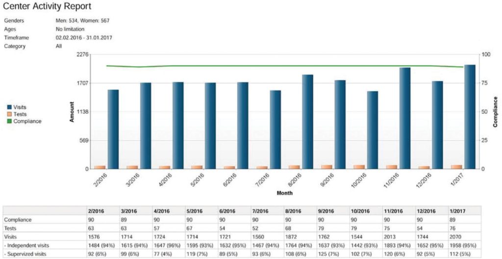 EVE Bulut Servisi – merkezde gerçekleşen her şeyin gerçek zamanlı görüntüsünü sunar. Merkez verilerine erişimi olan kişiler için günlük hacimleri ve kaliteyi bir bakışla izlemek kolaydır. Herhangi bir anormallik, bireysel ziyaretlerin ayrıntılarına girerek incelenebilir.