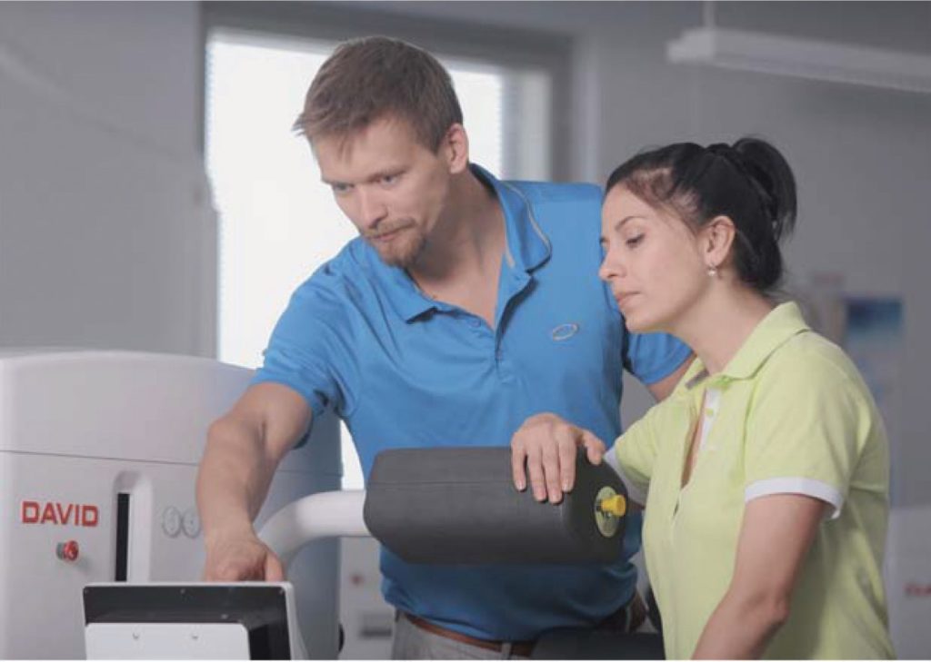 Kökleri spor bilimine dayanan David teknolojisi, seçkin sporcuların en zorlu ihtiyaçlarını karşılamak üzere inşa edildi. Bu ihtiyaçlar, sporcuların son derece yoğun egzersizleri en düşük yaralanma riski ile yapmasını sağlayan tavizsiz biyomekanik çözümlerin sunulmasını gerektiriyordu. Aynı teknik ilkelerin, rehabilitasyonda da mükemmel bir şekilde çalışması bizim için sürpriz oldu: yüksek yoğunluk ile birlikte düşük eklem baskısı ve yaralanma riski. Fakat o zamanki rehabilitasyon cihazlarımızın (bugünkü birçok cihazın olduğu gibi) kullanımı karışıktı birçok ayarlama gerektiriyordu. Bu nedenle, normal antrenman için bir tür ve rehabilitasyon için ise başka bir tür cihaz olması gerekiyordu. David cihazlarının gelişmiş son versiyonu otomatik ayarlamalar ve kilitlenebilir yayların kullanıldığı en son yenilikçi teknolojiyi temel alır. Sadece 1-2 ayar ile (endüstri standartları 5-6 ayar demek), artık aynı cihazlarla zorlu