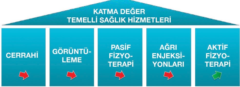 Tıbbi sonuçlarda iyileşme olmaksızın sürekli artan sağlık maliyeti hem sağlık hizmeti sağlayıcılarının hem de ödeme yapanların, mevcut sistemin temellerini sorgulamasına neden olmuştur. ‘Hizmet ücreti’ modeli daha fazlasını yapmak için teşvik edicidir. Hastaya ne kadar işlem uygulanırsa para da aynı oranda artar. Yeni yaklaşım, hasta için üretilen değere odaklanmak ve maliyeti en uygun seviyede tutmak ve güvenli olmak adına sadece kanıta dayalı yöntemleri kullanmaktır. Sonuçları hasta ve ödeyen açısından anlamlı bir yöntemle ölçebilme kabiliyeti kritik bir ögedir. Örneğin, birkaç yeni çalışma, omuz sıkışması3, dejeneratif diz problemleri4 ve omurga instabilitesi gibi birçok eklem problemi için cerrahinin doğru tedavi olmadığını gösteriyor5.