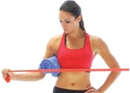 Şekil 4: Omuzun dış rotasyonu için yaygın olarak kullanılan bu egzersiz zayıf biyomekanik için tipik bir örneğidir: bant gerilince yük artar, kasların kuvveti azalır.